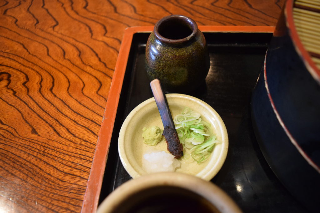 辛つゆは大根おろしの汁に焼き味噌を入れたつゆでそばをいただきます。